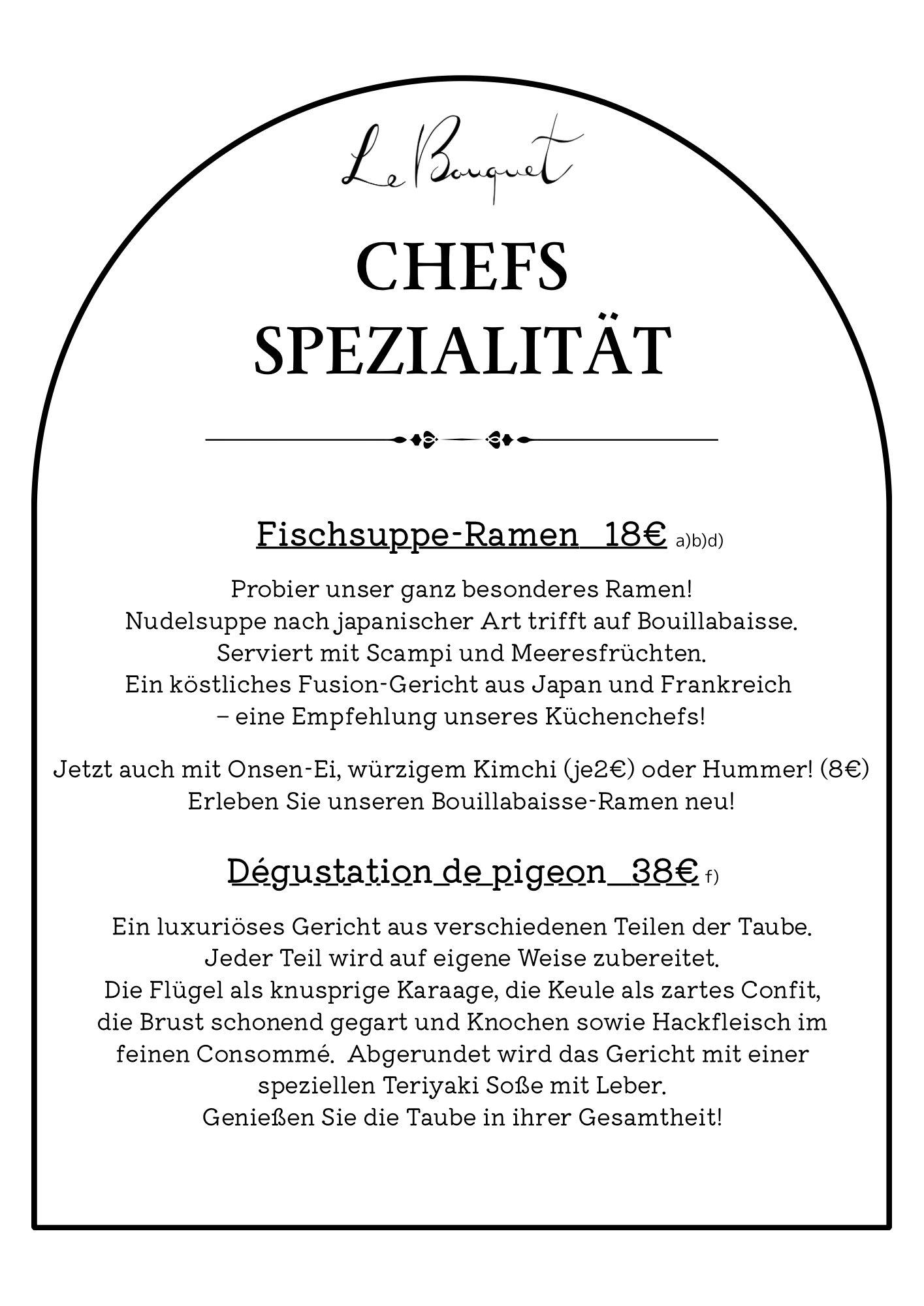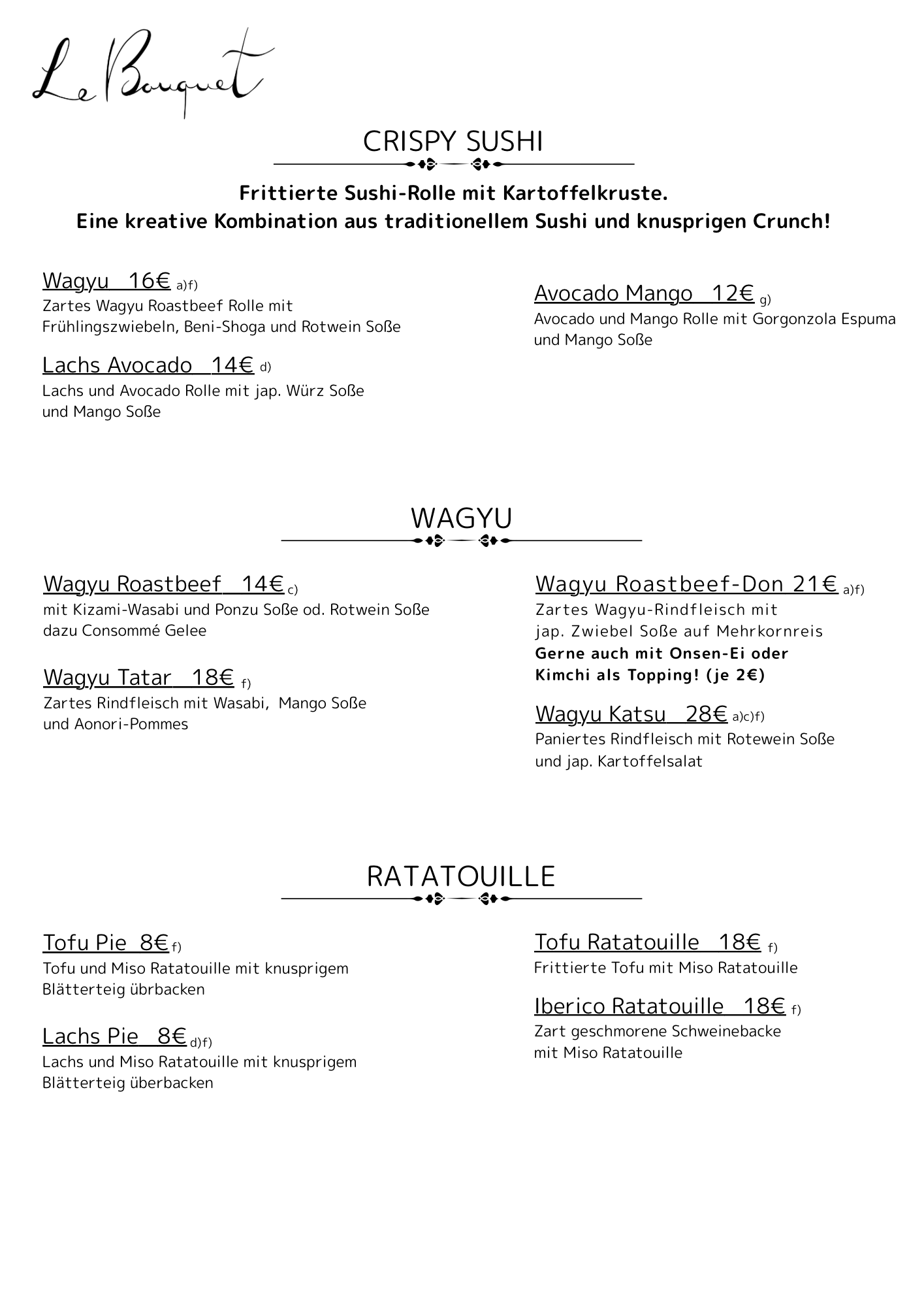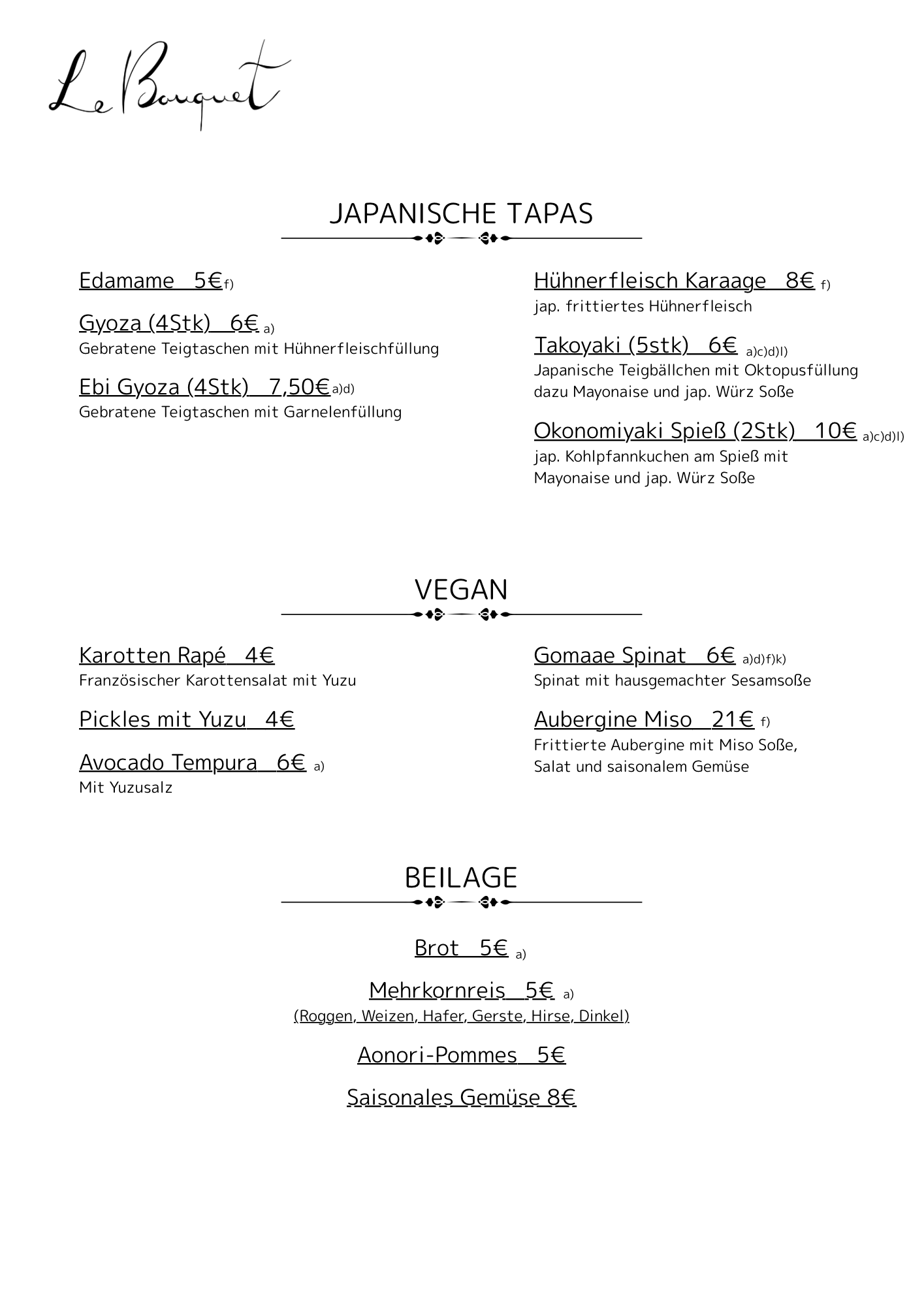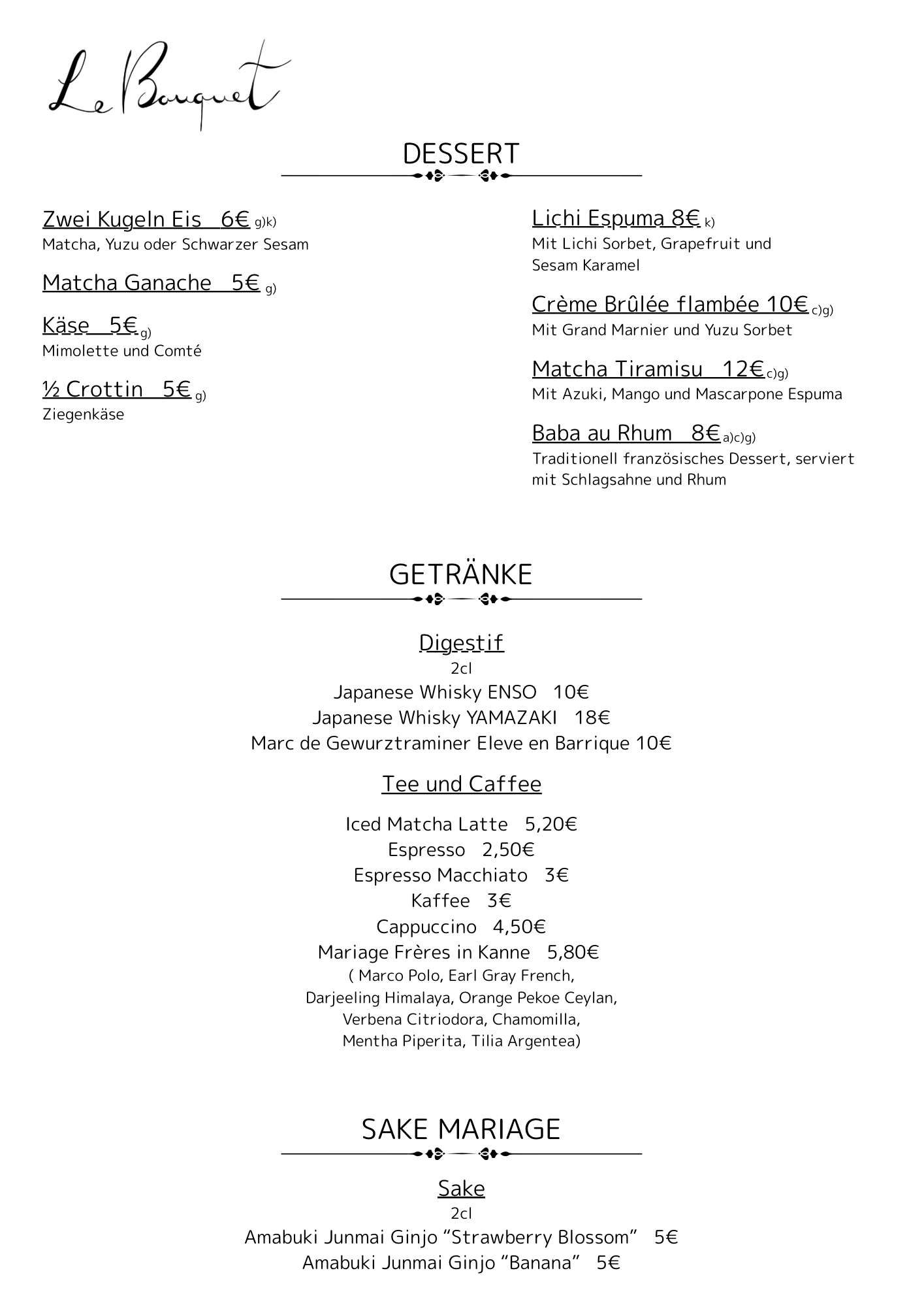 DINNER Sake Lunch Rotenwaldstr. 43 70197 Stuttgart TEL: 071195899559 Email: le.bouquet.stuttgart@gmail.com IMPRESSUM © 2024 Bistro Le Bouquet. All Rights Reserved.